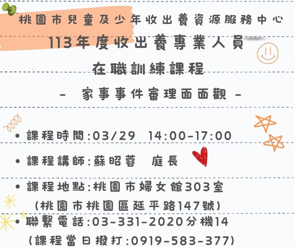 地點:桃園市婦女館303教室(桃園區延平路147號)