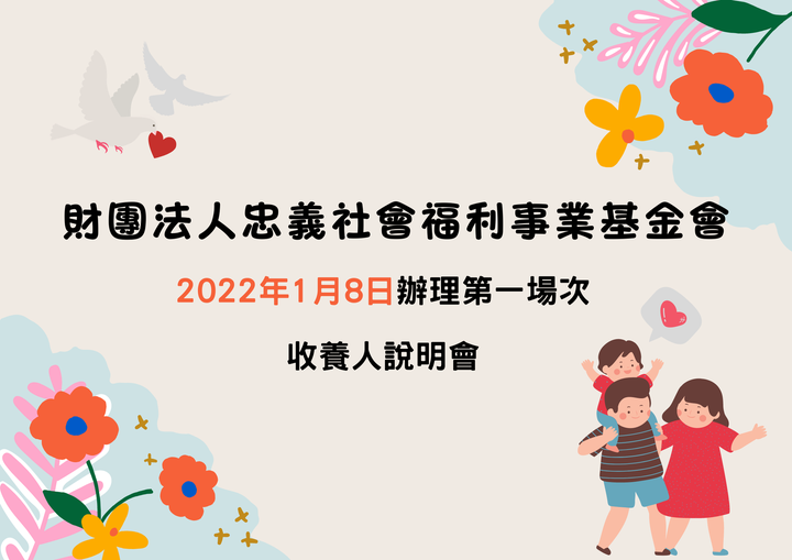 各位大伙伴小伙伴們好,忠義基金會將於明年1月舉辦第1場收養人說明會哦!如有想要收養兒少的家長們,請把握好這次機會報名參加哦!