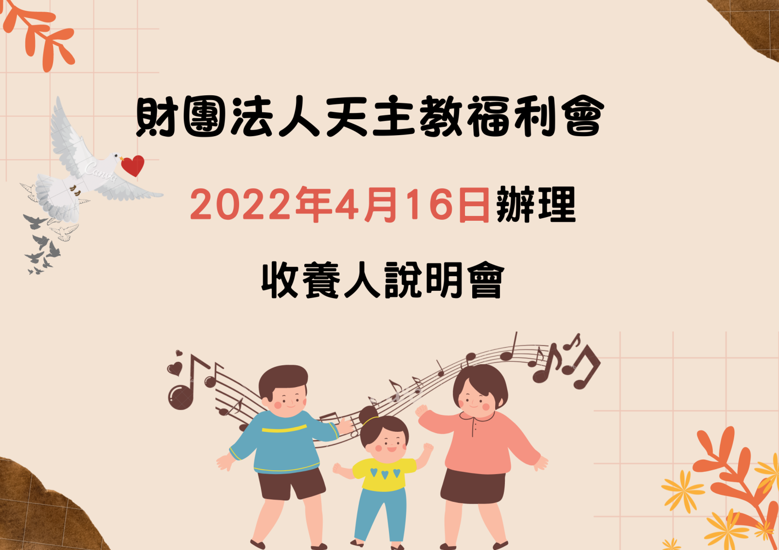 各位大伙伴小伙伴們好,天主教福利會將於111年4月舉辦收養人說明會哦!如有想要收養兒少的家長們,請把握好這次機會報名參加哦!