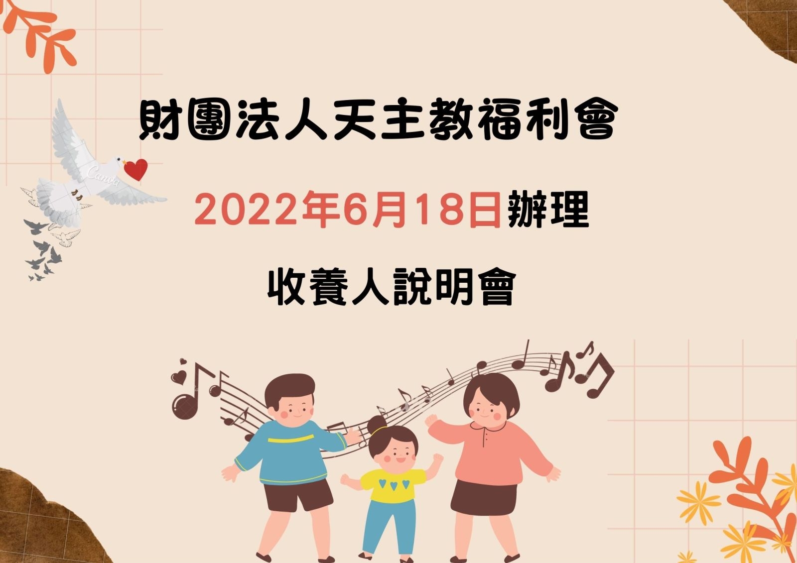 大家好,天主教福利會將於111年6月舉辦收養人說明會哦!如有想要收養兒少的家長們,請把握好這次機會報名參加!