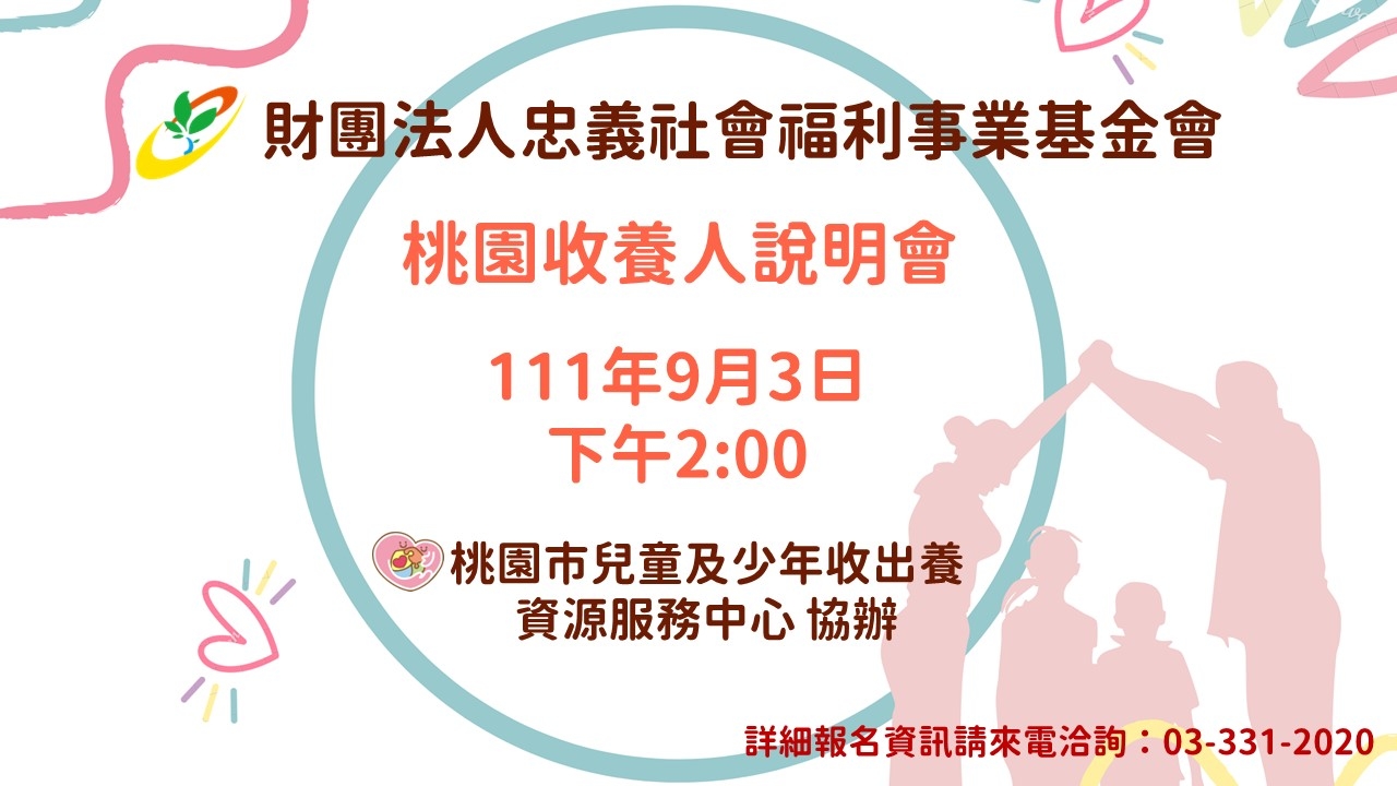忠義基金會將於111年9月舉辦桃園收養人說明會