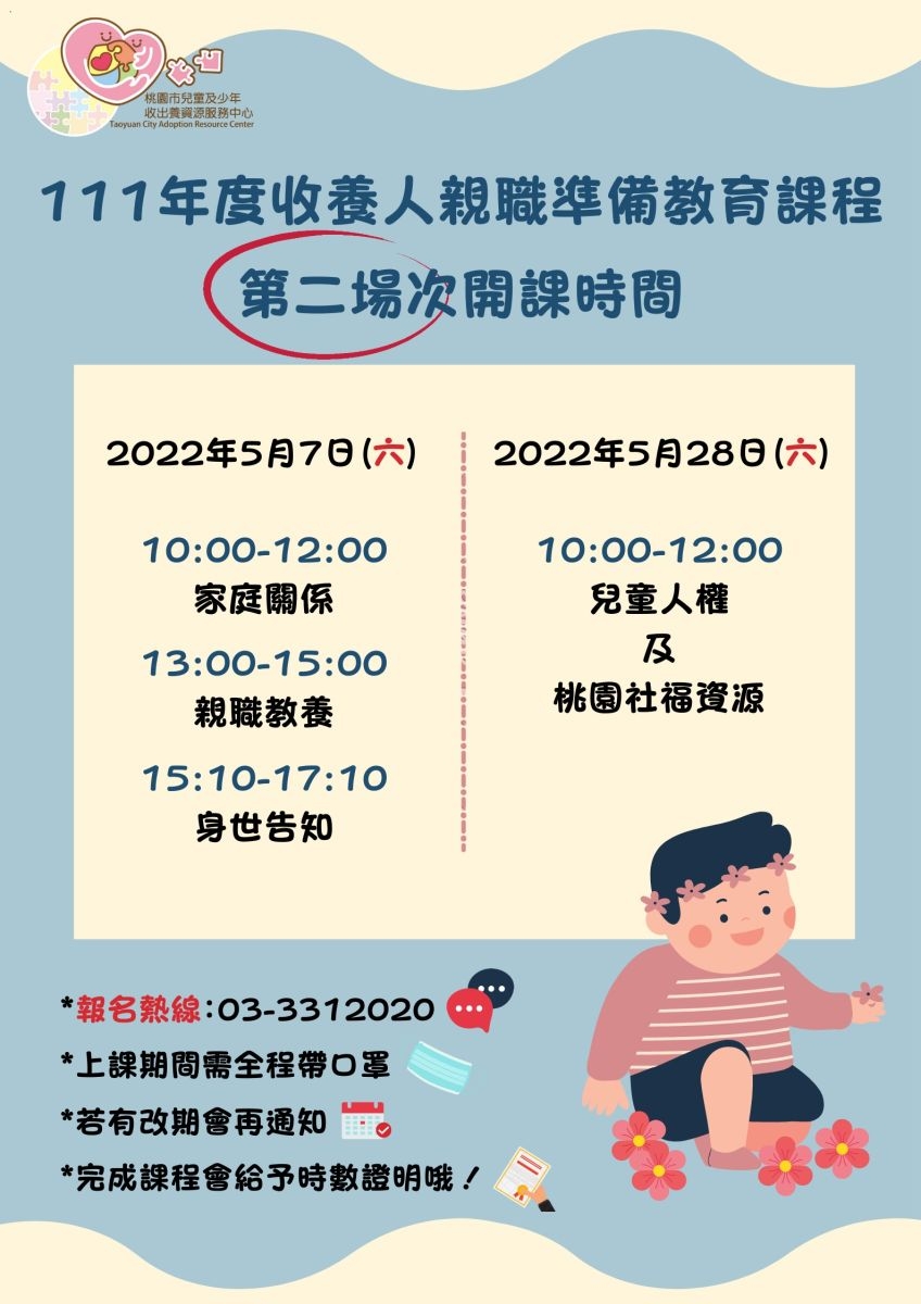 承辦單位:桃園市兒童及少年收出養資源服務中心(忠義社會福利事業基金會承辦)