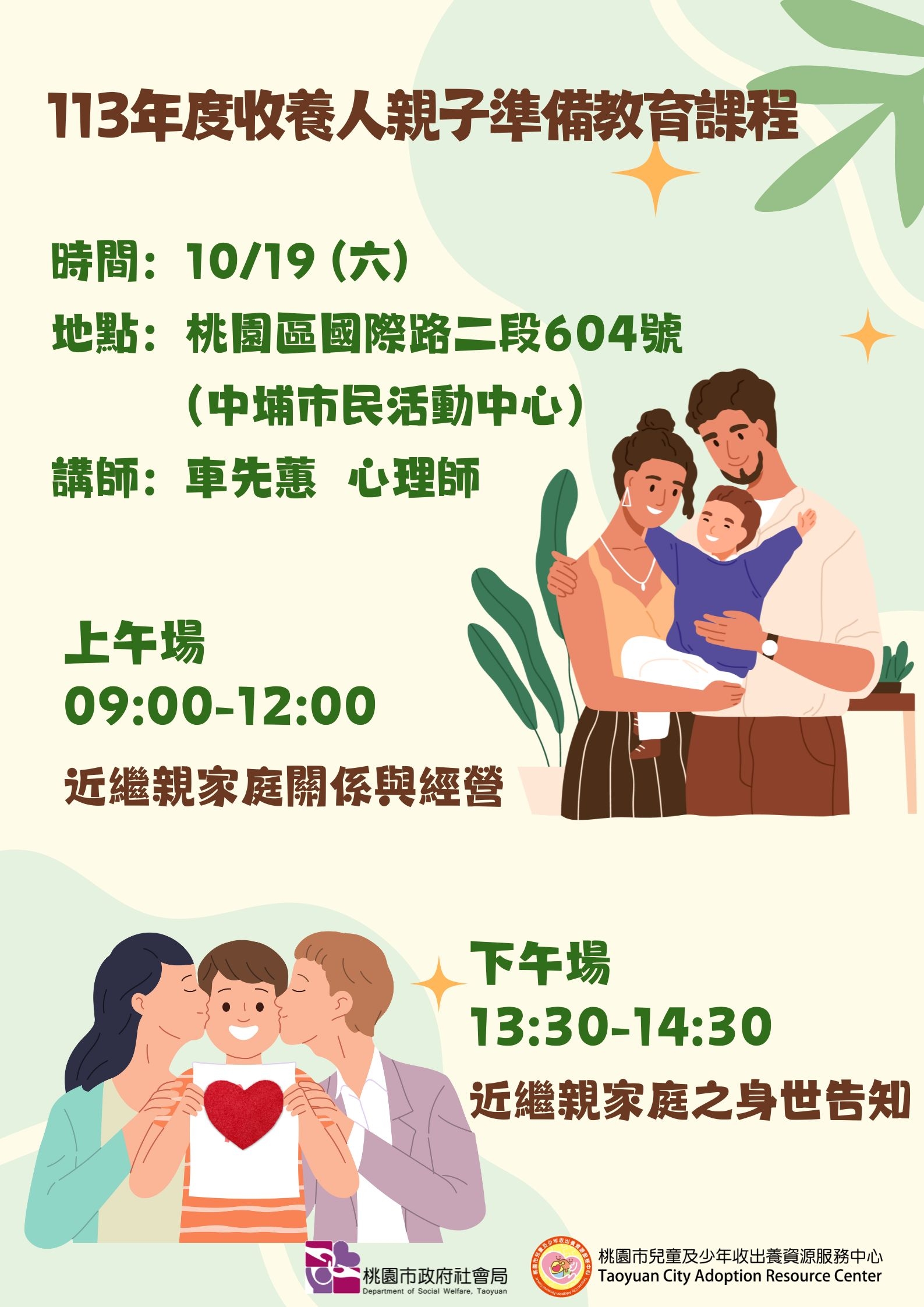 本課程與【收出養媒合服務】辦理之訓練課程不同,若有興趣收養無血緣孩子的民眾,請與收出養媒合服務單位進行諮詢、報名說明會及參與收養相關服務。