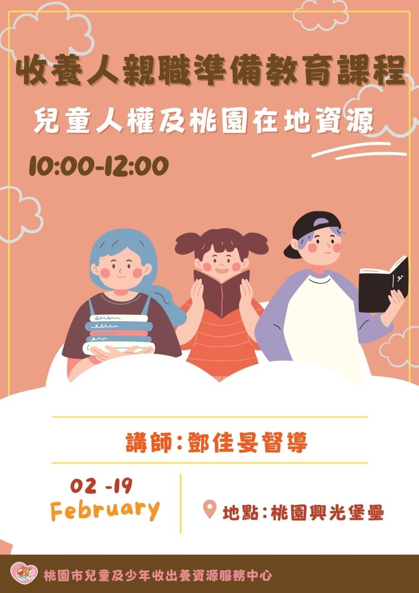有關於收養家庭親職準備課程,將於2月19日於桃園興光堡壘舉辦哦!