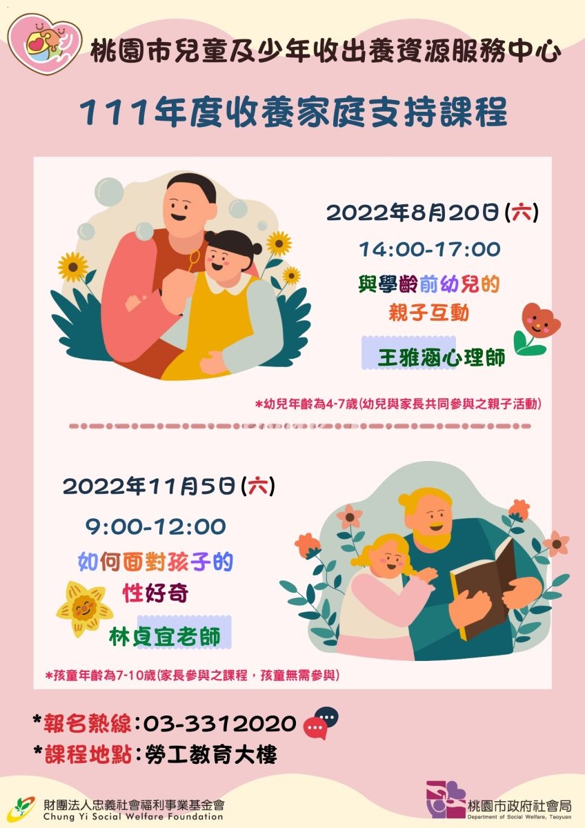 承辦單位:桃園市兒童及少年收出養資源服務中心(忠義社會福利事業基金會承辦)