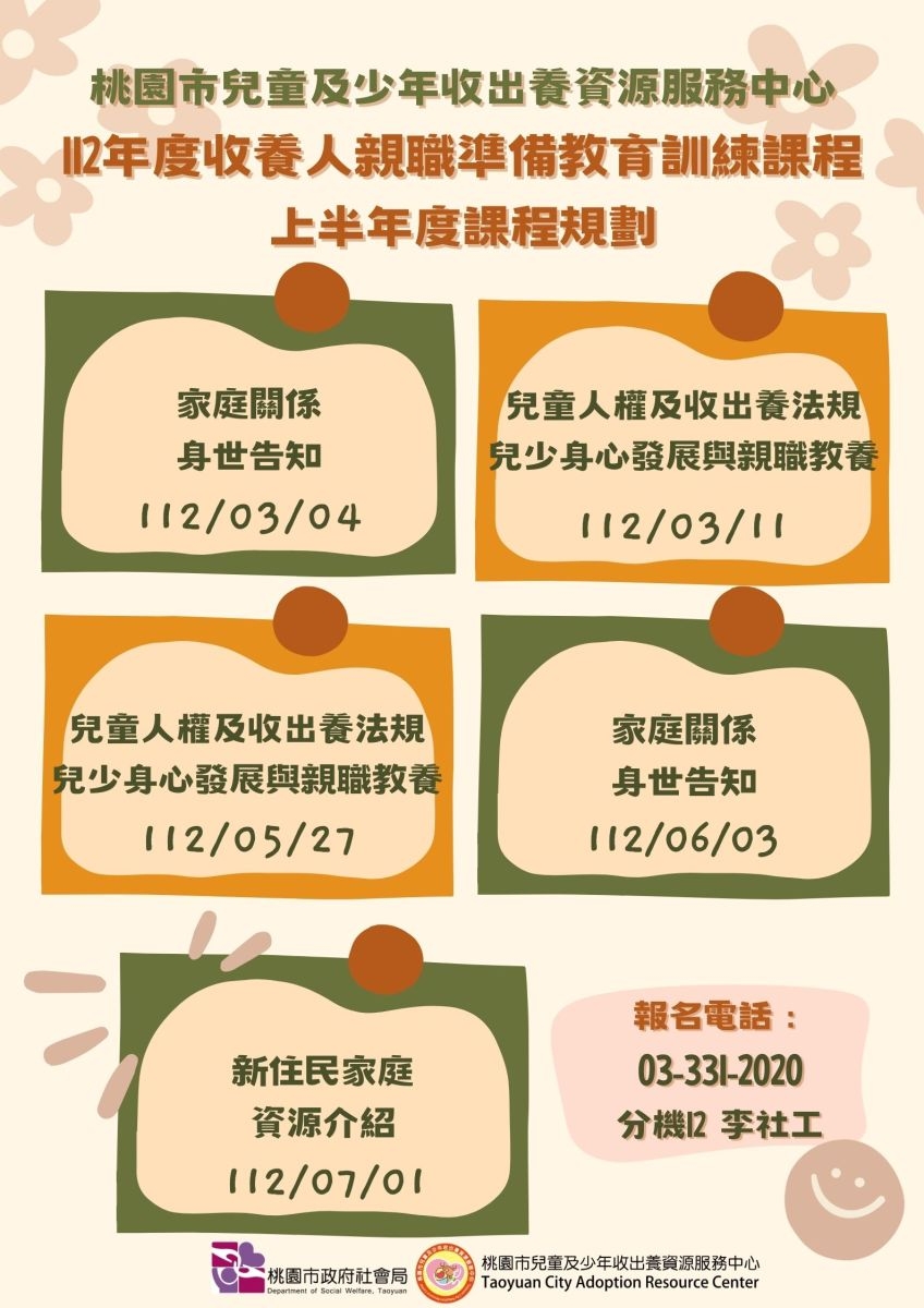 今年上半年的親職準備教育訓練課程規劃出爐啦~歡迎已向法院提出聲請的收養家庭、受法院要求上課的收養家庭或關注收出養議題的民眾來上課喔!