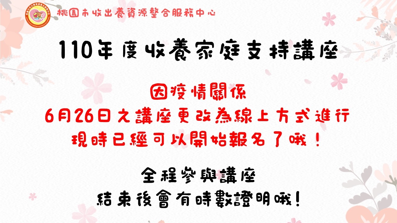 【110年度收養家庭支持講座】6/26課程報名開始囉!!